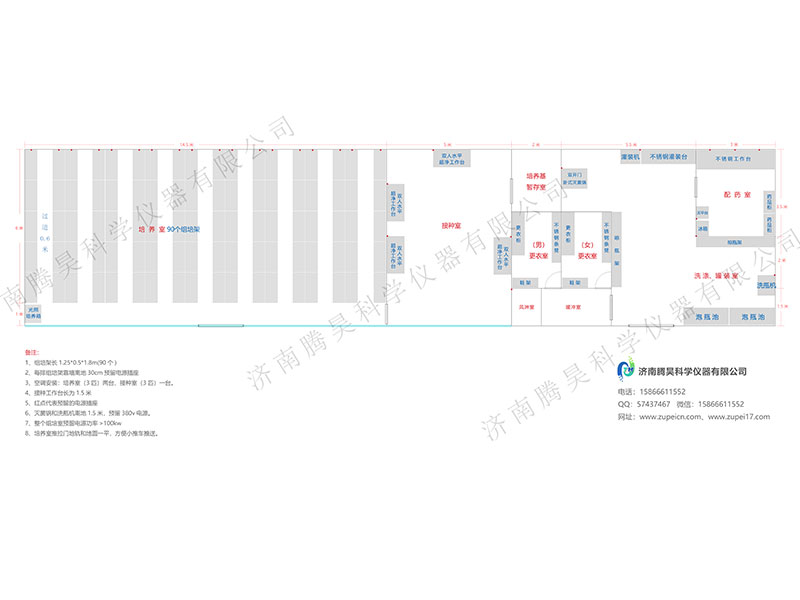 4.大培养面积:五层组织培养架,每层可容纳约90瓶塑料组织培养瓶,每个架可容纳约500瓶组织培养苗,10个架子可基本满足学生制作的组织培养苗的培养。