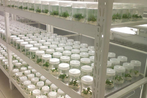 目前培养架是组培室植株繁殖培养的通用设施,具有成本低、设计灵活、可充分利用培养空间等优点,以操作方便、大限度利用培养空间为原则。一般有4-5层,层间间隔40-50cm,光照强度可根据培养植物特性来确定,一般每架上配备2-4盏日光灯。