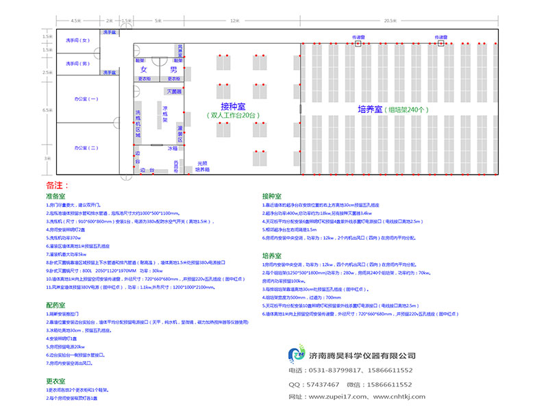 有相对独立的90 m2左右的实验室即可,水电暖设施齐全,采光条件好。至少分成3间使用,通过玻璃隔断分成单间:一间为准备间,用于玻璃器皿的清洗和贮存以及培养基的制备;第二间为操作间,这个房间必须严格消毒,用于实验操作,在清洗玻璃器皿和制备培养基时要分开进行,以免影响培养基的成分;第三间为炼苗室,用于无菌苗的培养,这一间的温度条件、光照条件较为严格。