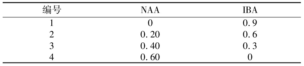 表3 生根培养基不同激素浓度配比表 mg·L-1