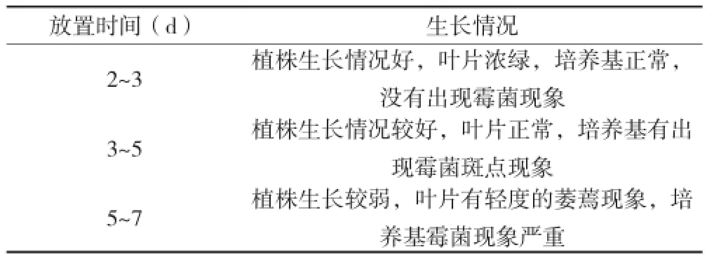 表1 不同炼苗时间对铁皮石斛组培苗生长的影响