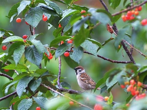 樱桃,是李属类植物的统称,包括樱桃亚属、酸樱桃亚属、桂樱亚属等。乔木,高2-6米,树皮灰白色。小枝灰褐色,嫩枝绿色,无毛或被疏柔毛。冬芽卵形,无毛。
