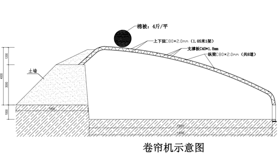 钢筋焊接和钢管组装式大棚,一般设计、建造时要考虑曲率问题,要求曲率达0.15-0.2才能有较好的抗风、雪和采光性。曲率为高跨比,即曲率=(顶高一肩高)÷跨度。所以这两种类型的无柱大棚高度多数超过2米。虽然随高度增加可使棚内温度变化趋势较稳定,也利于田间作业和作物的生长,但是在早春季节升温慢、热空气在上层,不利于早熟栽培。