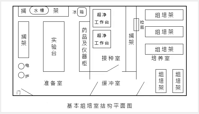在组培室建设采用苏净集团生产的净化施工彩钢板,实验室吊顶顶板采用手工单玻媄岩棉夹芯板厚为0.426的钢板,实验室隔墙及护墙采用手工岩棉夹芯彩钢板板厚为0.426mm的钢板,本材料采用插接方式,表面光滑不积尘不染尘阻碍微生物的滋生,密封性能好。车间设计吊顶高度2.6米,室内做铝合金喷塑圆弧角处理,达到不积尘不染尘;净化密闭门采用双密封净化型材施工,做到良好的密闭效果,门上设置固定观察窗;固定观察窗采用5毫米厚浮法玻璃,窗框采用圆弧角型材;施工所用铝合金型材均经过喷涂处理,表面光滑圆润,美观大方,不积尘染尘。