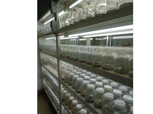 2.将接种好的组培苗放在培养板上,按要求打开三基色自然光管。如果诱导的植物是阴生植物,只能打开一个试管;中光可以根据植物开两盏灯;光照强烈的植物可以打开所有三盏灯。