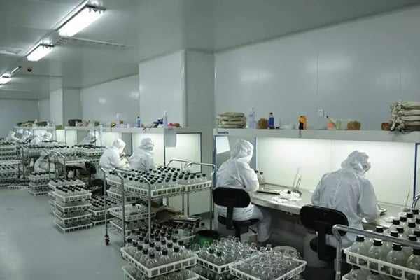 5、通过漏斗或下口杯将培养基注入组组织培养容器内,注入量为瓶容积的十分之一左右。灌装要迅速,尽可能避免培养基粘在瓶壁上,且应在培养基未冷却之前灌装完毕。