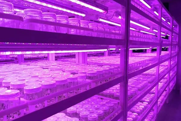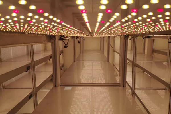 目前为止,植物工厂使用的人工光源主要有高压钠灯、荧光灯和发光二极管(LED)。早期的植物工厂多使用采用高压钠灯用于植物的补光,但其光谱缺少植物生长必须的红蓝光谱,发热量较高,功率高,不利于多层立体栽培。荧光灯的发射光谱范围可在350-750nm之间,光谱性能较好,较高压钠灯相比,发光效率更高,功率较低,但其红光光谱波峰值较低,一般在植物培养时需增加红光光源进行补光处理。