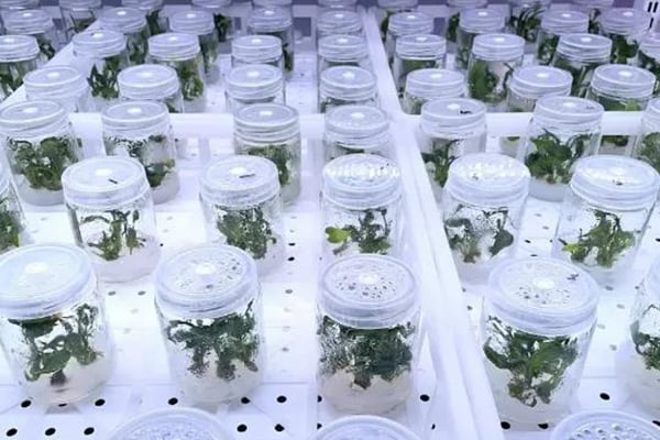 3、光照不足,组培苗会变黄、变弱、变细并加速生长,使苗在短时间内变得更瘦弱。