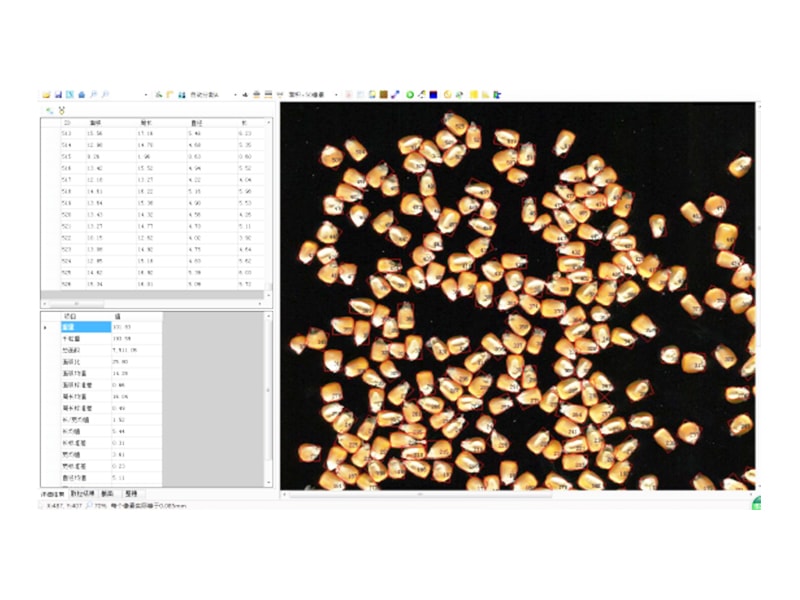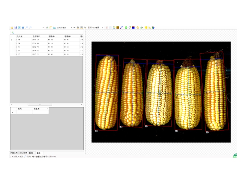 3、玉米截面分析功能:玉米的穗粗、轴粗、穗行数、粒宽。一次性最少可测15个截面。